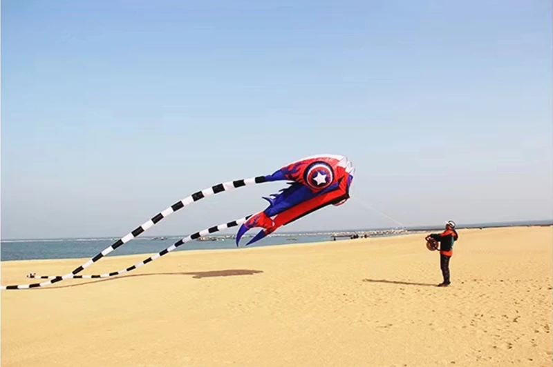 Show kite15m Ray fish kite flying 30D Ripstop Nylon Fabric Line Laundry Kite Pendant Large soft Inflatable Kite no including LED
