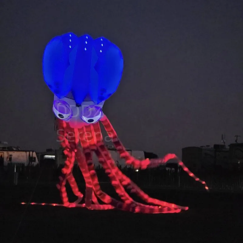 What sets this kite apart is its mesmerizing LED lighting system. The embedded lights illuminate the tentacles of the octopus, creating a captivating display as it dances across the evening sky. Perfect for night flying, these lights add a magical touch, turning an ordinary kite session into a spectacular show.