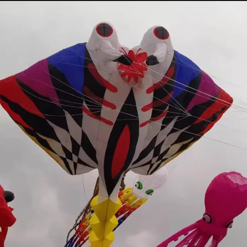 The Show Kite 15m Ray Fish Kite serves as a dynamic line laundry kite pendant, adding a vibrant splash of color and motion to your kite line. Its large size and striking appearance make it an eye-catching addition to any outdoor gathering, festival, or beach outing.